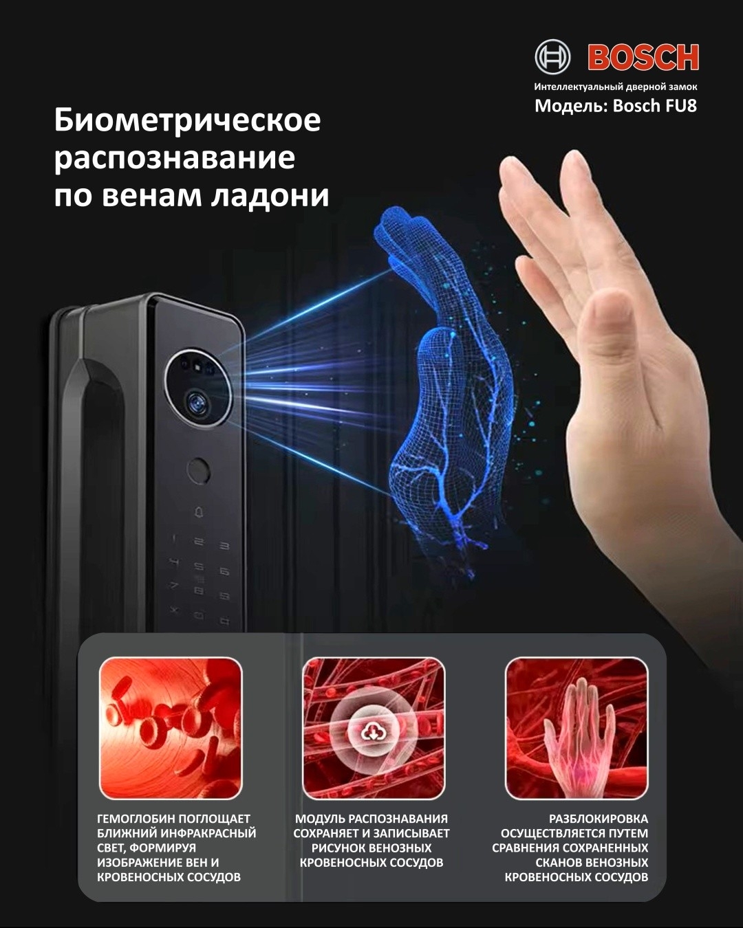 Электронный врезной замок Bosch FU8 PLUS — это современное решение для надежной защиты металлических и деревянных дверей. Модель сочетает передовые биометрические технологии, интеллектуальное управление и высокий уровень безопасности, соответствующий 4 классу защиты.
