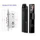 Отличительная особенность – это встроенный дисплей и камера, что позволяет отказаться от обычного глазка. Сам замок электронный, но также всегда можно открыть механическим способом с помощью спец ключа с наружной стороны. Изнутри очень удобная ручка для открытия/закрытия вручную, работает очень тихо. Закрывается замок автоматически. Открытие – распознаванием лица, сканером отпечатка пальца, кодом, картой. Также возможно подключение к домашней WI-FI сети и управление с помощью приложение на мобильном телефоне. В данной модели внедрена возможность звонка, после чего на мобильный телефон приходит входящий видео вызов с возможностью двухстороннего общения и удаленного открытия замка.